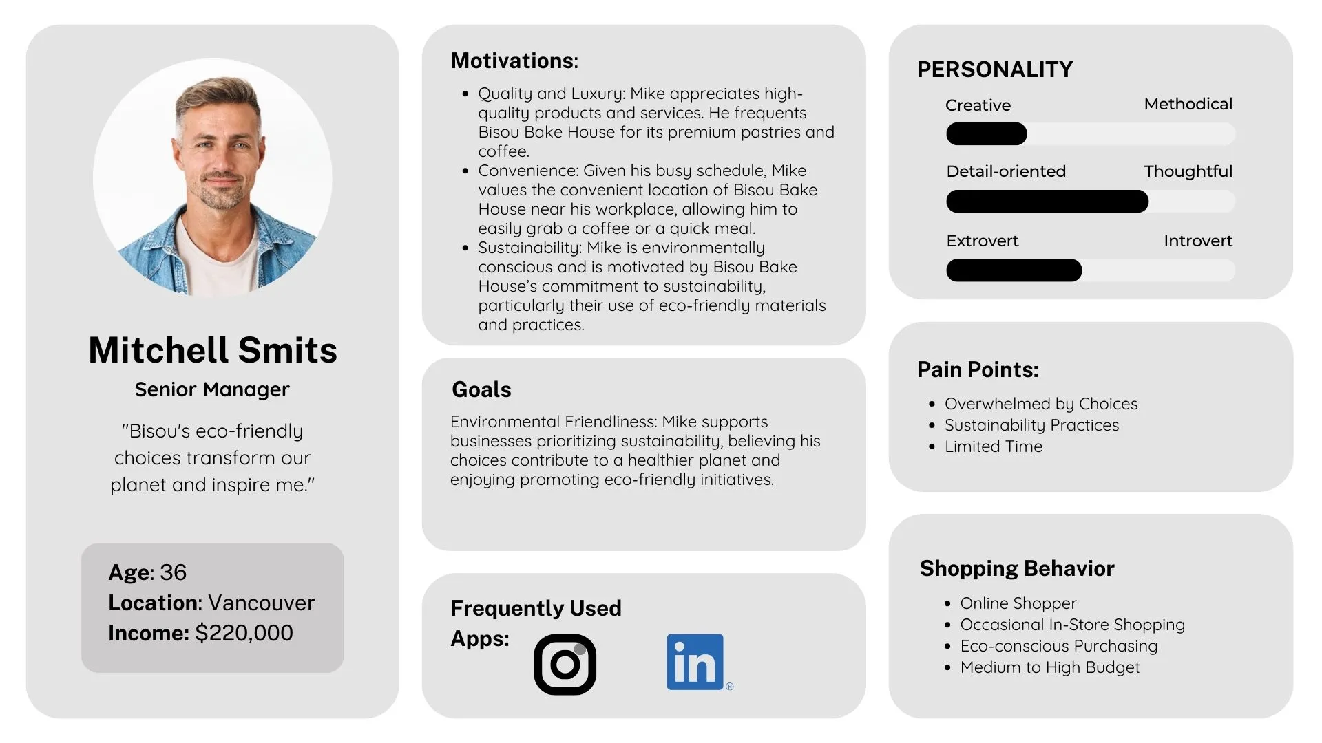 For the redesign of Bisou Bake House's marketing materials, I conducted extensive research to ensure the designs not only resonate with the brand's luxurious and high-quality image but also align with environmental sustainability goals. This research included studying specific guidelines and recommendations from credible sources to inform my design choices.