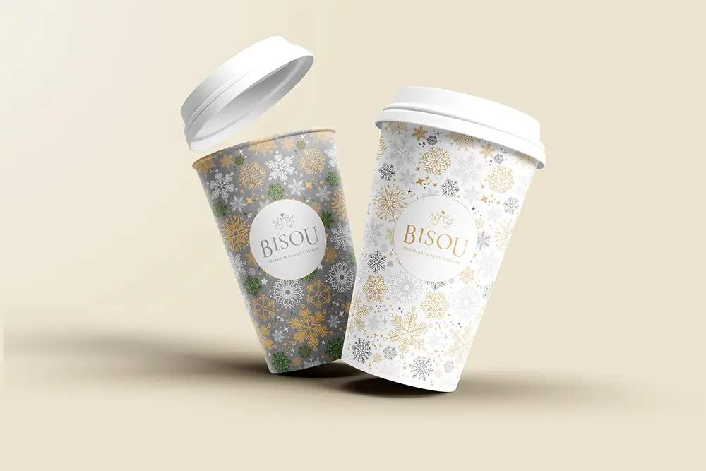 The primary objective of this redesign was to develop eco-friendly coffee cups that would minimize waste and promote sustainability without compromising on the luxurious experience Bisou Bake House is known for. In addition to designing biodegradable coffee cups and lids made from PLA (Polylactic Acid), I also created reusable coffee cups and designed tote bags to reduce the use of paper bags. These initiatives aim to further reduce environmental impact and promote a sustainable lifestyle among our customers. I decided to change the materials used for the coffee cup lids to biodegradable materials. As a result, the color was changed to off-white.